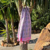 Si vous êtes un visiteur de sauna, une serviette de hammam ou fouta d'une taille de 100x180 ou 100x200 cm est assez grande. Vous utilisez généralement ce tissu dans le sauna comme enveloppement. Cette taille est également idéale à emporter avec vous pour la randonnée ou lorsque vous voyagez. Si vous allez à la plage ou à la piscine, une serviette de hammam, fouta ou drap de plage peut être un peu plus grande. Une serviette d'une taille de 100 x 200 cm convient, mais si vous trouvez plus confortable de vous allonger avec tout votre corps allongé sur un linge, alors la serviette de hammam Deniz de 100 x 230 cm est recommandée. Si vous allez utiliser un lit de plage, la housse de lit de plage est Double Diamondtrès recherché. Vous enroulez une couverture de lit de plage autour de la tête de votre lit de plage et le vent ne souffle pas sur votre lit de plage. Les couvre-lits de plage ont une longueur qui couvre tout votre lit de plage.