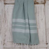 Si vous êtes un visiteur de sauna, une serviette de hammam ou fouta d'une taille de 100x180 ou 100x200 cm est assez grande. Vous utilisez généralement ce tissu dans le sauna comme enveloppement. Cette taille est également idéale à emporter avec vous pour la randonnée ou lorsque vous voyagez. Si vous allez à la plage ou à la piscine, une serviette de hammam, fouta ou drap de plage peut être un peu plus grande. Une serviette d'une taille de 100 x 200 cm convient, mais si vous trouvez plus confortable de vous allonger avec tout votre corps allongé sur un linge, alors la serviette de hammam Deniz de 100 x 230 cm est recommandée. Si vous allez utiliser un lit de plage, la housse de lit de plage est Double Diamondtrès recherché. Vous enroulez une couverture de lit de plage autour de la tête de votre lit de plage et le vent ne souffle pas sur votre lit de plage. Les couvre-lits de plage ont une longueur qui couvre tout votre lit de plage.