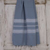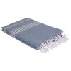 Deze hamamdoeken hebben een ander dessin dan de classic hamamdoeken van Ottomania. Ze hebben een lengte van 200 x 100 cm. Ideaal voor bijvoorbeeld op een strandstoel of strandbed waarmee je deze in het geheel kan bedekken. Ondanks zijn lengte zijn deze extra lange hamamdoeken nog steeds lekker licht en klein opvouwbaar. De Ottomania hamamdoek in de kleur jeans is gemaakt van hydrofiel katoen waardoor deze zeer goed vocht opneemt. Deze lichtgewicht hamamdoek is ideaal als strandhanddoek, voor op reis, voor op de boot, voor naar het zwembad, de sportschool of de sauna. Al onze hamamdoeken worden geweven op een "black loom" weefmachine. Dit is een weefgetouw dat half automatisch is. Het is een ambacht die van familie op familie gaat. De kwastjes worden door de vrouwen met de hand gedraaid en geknoopt. Een echte Turkse ambacht waar men zeer trots op is en wat je nog echt handwerk mag noemen. Kleur en gewicht verschillen en/of weeffoutjes horen bij het product. Dit doet niks af aan de kwaliteit van de hamamdoek.