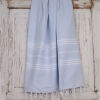 Si vous êtes un visiteur de sauna, une serviette de hammam ou fouta d'une taille de 100x180 ou 100x200 cm est assez grande. Vous utilisez généralement ce tissu dans le sauna comme enveloppement. Cette taille est également idéale à emporter avec vous pour la randonnée ou lorsque vous voyagez. Si vous allez à la plage ou à la piscine, une serviette de hammam, fouta ou drap de plage peut être un peu plus grande. Une serviette d'une taille de 100 x 200 cm convient, mais si vous trouvez plus confortable de vous allonger avec tout votre corps allongé sur un linge, alors la serviette de hammam Deniz de 100 x 230 cm est recommandée. Si vous allez utiliser un lit de plage, la housse de lit de plage est Double Diamondtrès recherché. Vous enroulez une couverture de lit de plage autour de la tête de votre lit de plage et le vent ne souffle pas sur votre lit de plage. Les couvre-lits de plage ont une longueur qui couvre tout votre lit de plage.