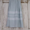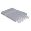 Si vous êtes un visiteur de sauna, une serviette de hammam ou fouta d'une taille de 100x180 ou 100x200 cm est assez grande. Vous utilisez généralement ce tissu dans le sauna comme enveloppement. Cette taille est également idéale à emporter avec vous pour la randonnée ou lorsque vous voyagez. Si vous allez à la plage ou à la piscine, une serviette de hammam, fouta ou drap de plage peut être un peu plus grande. Une serviette d'une taille de 100 x 200 cm convient, mais si vous trouvez plus confortable de vous allonger avec tout votre corps allongé sur un linge, alors la serviette de hammam Deniz de 100 x 230 cm est recommandée. Si vous allez utiliser un lit de plage, la housse de lit de plage est Double Diamondtrès recherché. Vous enroulez une couverture de lit de plage autour de la tête de votre lit de plage et le vent ne souffle pas sur votre lit de plage. Les couvre-lits de plage ont une longueur qui couvre tout votre lit de plage.