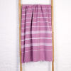 Si vous êtes un visiteur de sauna, une serviette de hammam ou fouta d'une taille de 100x180 ou 100x200 cm est assez grande. Vous utilisez généralement ce tissu dans le sauna comme enveloppement. Cette taille est également idéale à emporter avec vous pour la randonnée ou lorsque vous voyagez. Si vous allez à la plage ou à la piscine, une serviette de hammam, fouta ou drap de plage peut être un peu plus grande. Une serviette d'une taille de 100 x 200 cm convient, mais si vous trouvez plus confortable de vous allonger avec tout votre corps allongé sur un linge, alors la serviette de hammam Deniz de 100 x 230 cm est recommandée. Si vous allez utiliser un lit de plage, la housse de lit de plage est Double Diamondtrès recherché. Vous enroulez une couverture de lit de plage autour de la tête de votre lit de plage et le vent ne souffle pas sur votre lit de plage. Les couvre-lits de plage ont une longueur qui couvre tout votre lit de plage.
