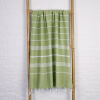 De Ottomania mooi gestreepte hamamdoeken in de kleur mosgroen zijn gemaakt van hydrofiel katoen waardoor ze zeer goed vocht opnemen. Deze lichtgewicht hamamdoek is ideaal als strandhanddoek, op reis, op de boot, naar het zwembad, sportschool of de sauna. De doek kan zeer compact worden opgevouwen en weegt maar 250 gram. Bovendien is de hammamdoek snel droog en goed te wassen. Daarom ideaal voor in de koffer, rugzak of strandtas. Prima te gebruiken als strandlaken of op een ligstoel.