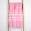 Si vous êtes un visiteur de sauna, une serviette de hammam ou fouta d'une taille de 100x180 ou 100x200 cm est assez grande. Vous utilisez généralement ce tissu dans le sauna comme enveloppement. Cette taille est également idéale à emporter avec vous pour la randonnée ou lorsque vous voyagez. Si vous allez à la plage ou à la piscine, une serviette de hammam, fouta ou drap de plage peut être un peu plus grande. Une serviette d'une taille de 100 x 200 cm convient, mais si vous trouvez plus confortable de vous allonger avec tout votre corps allongé sur un linge, alors la serviette de hammam Deniz de 100 x 230 cm est recommandée. Si vous allez utiliser un lit de plage, la housse de lit de plage est Double Diamondtrès recherché. Vous enroulez une couverture de lit de plage autour de la tête de votre lit de plage et le vent ne souffle pas sur votre lit de plage. Les couvre-lits de plage ont une longueur qui couvre tout votre lit de plage.