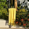 Si vous êtes un visiteur de sauna, une serviette de hammam ou fouta d'une taille de 100x180 ou 100x200 cm est assez grande. Vous utilisez généralement ce tissu dans le sauna comme enveloppement. Cette taille est également idéale à emporter avec vous pour la randonnée ou lorsque vous voyagez. Si vous allez à la plage ou à la piscine, une serviette de hammam, fouta ou drap de plage peut être un peu plus grande. Une serviette d'une taille de 100 x 200 cm convient, mais si vous trouvez plus confortable de vous allonger avec tout votre corps allongé sur un linge, alors la serviette de hammam Deniz de 100 x 230 cm est recommandée. Si vous allez utiliser un lit de plage, la housse de lit de plage est Double Diamondtrès recherché. Vous enroulez une couverture de lit de plage autour de la tête de votre lit de plage et le vent ne souffle pas sur votre lit de plage. Les couvre-lits de plage ont une longueur qui couvre tout votre lit de plage.